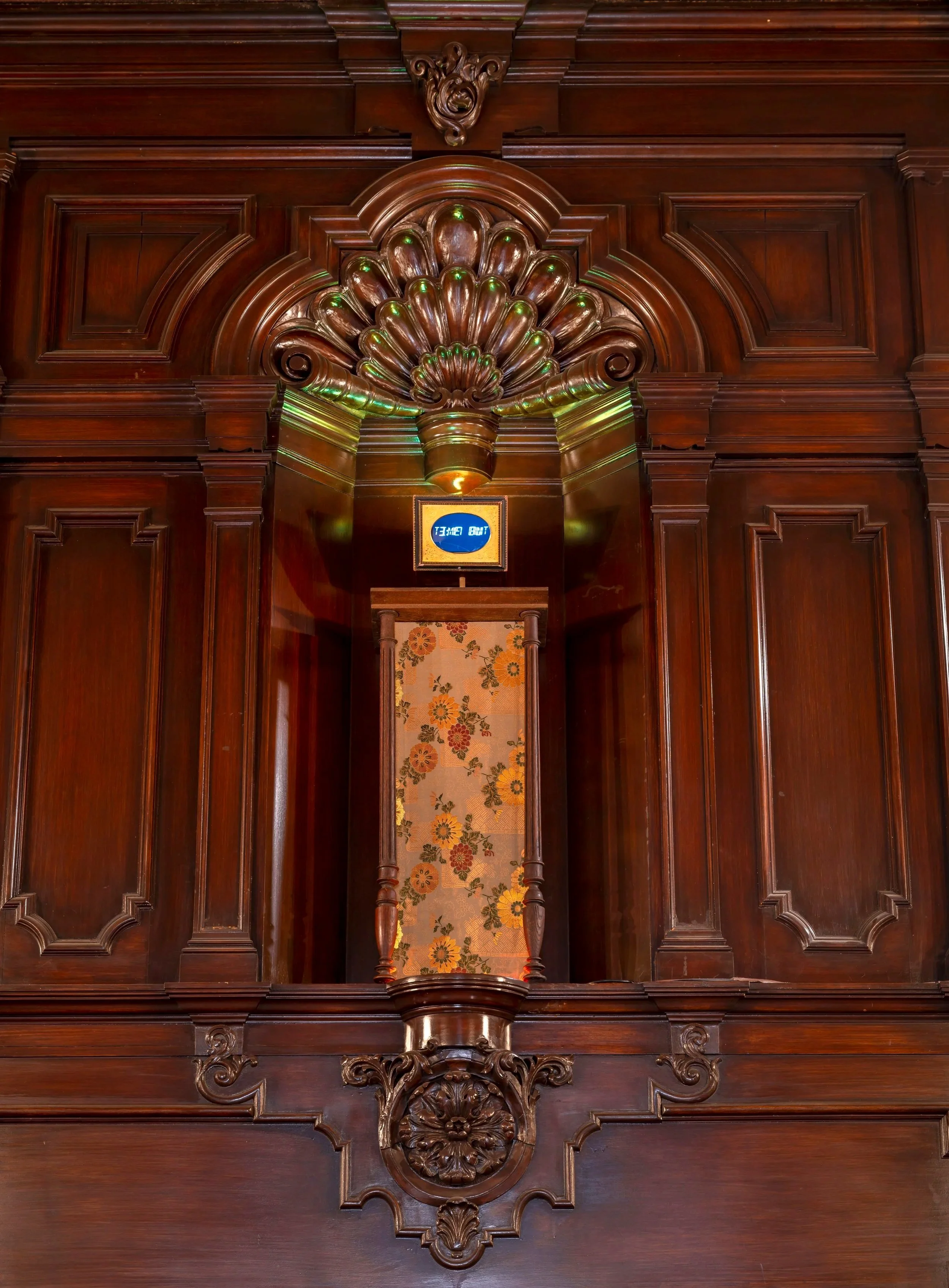 Jane Brucker, “Time Poem” (2024), Digital clock, clock, wood and textiles. Photograph by Gene Ogami.